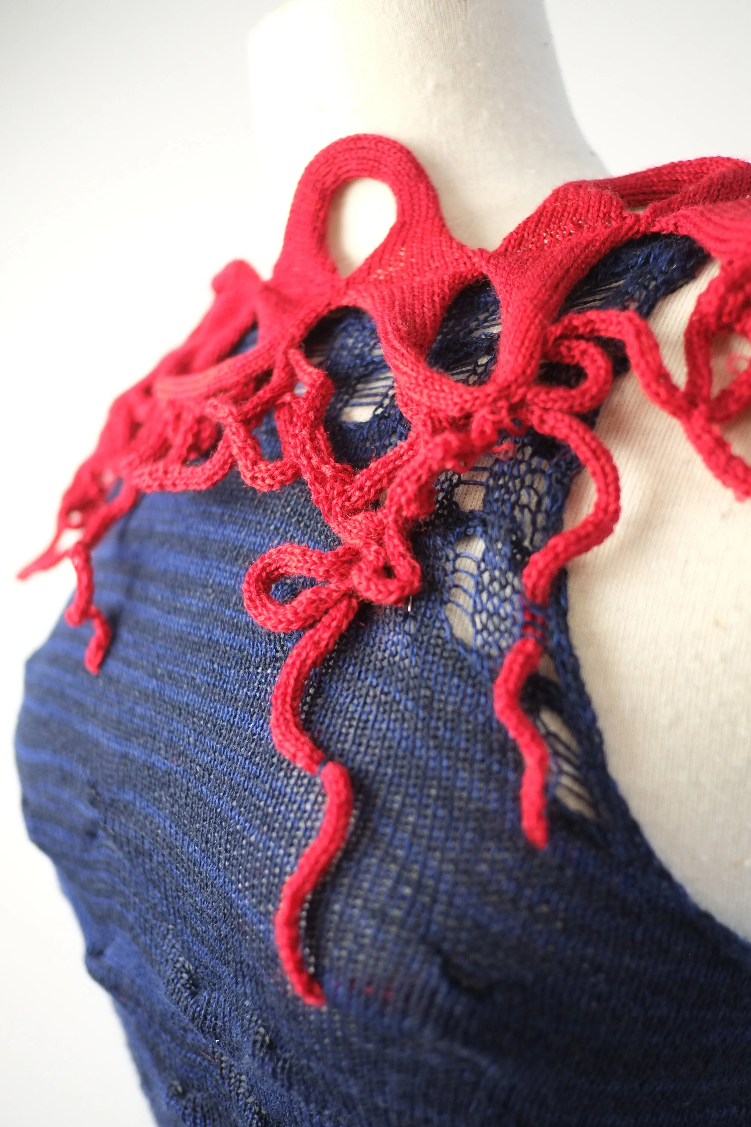 Machine knitted wearable art based on coral forms disappearing in global warming.