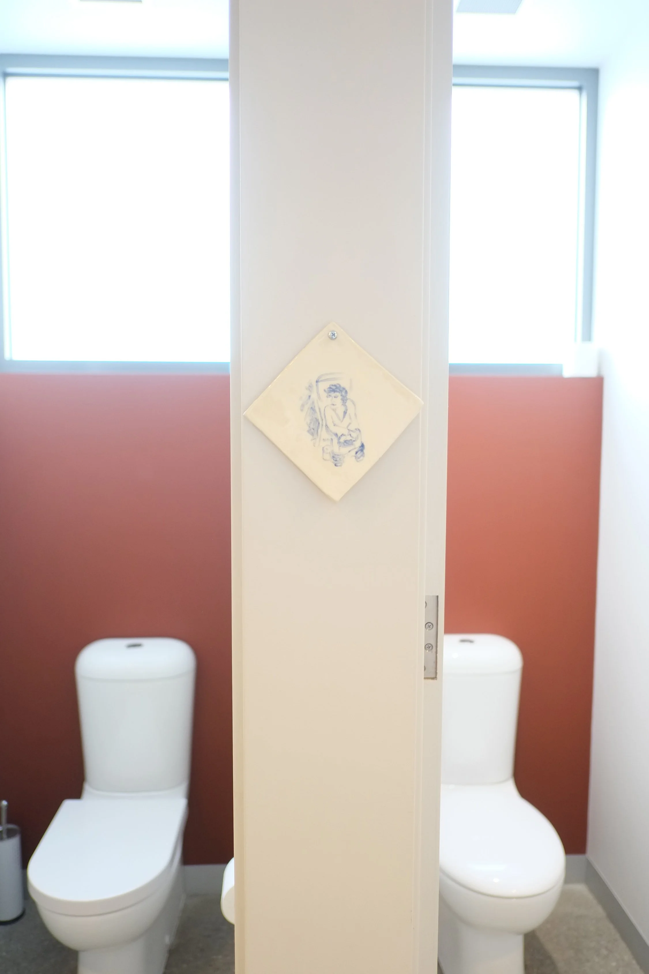 An exhibition in the toilets of Moonah Arts Centre (Lutruwita/Tasmania)